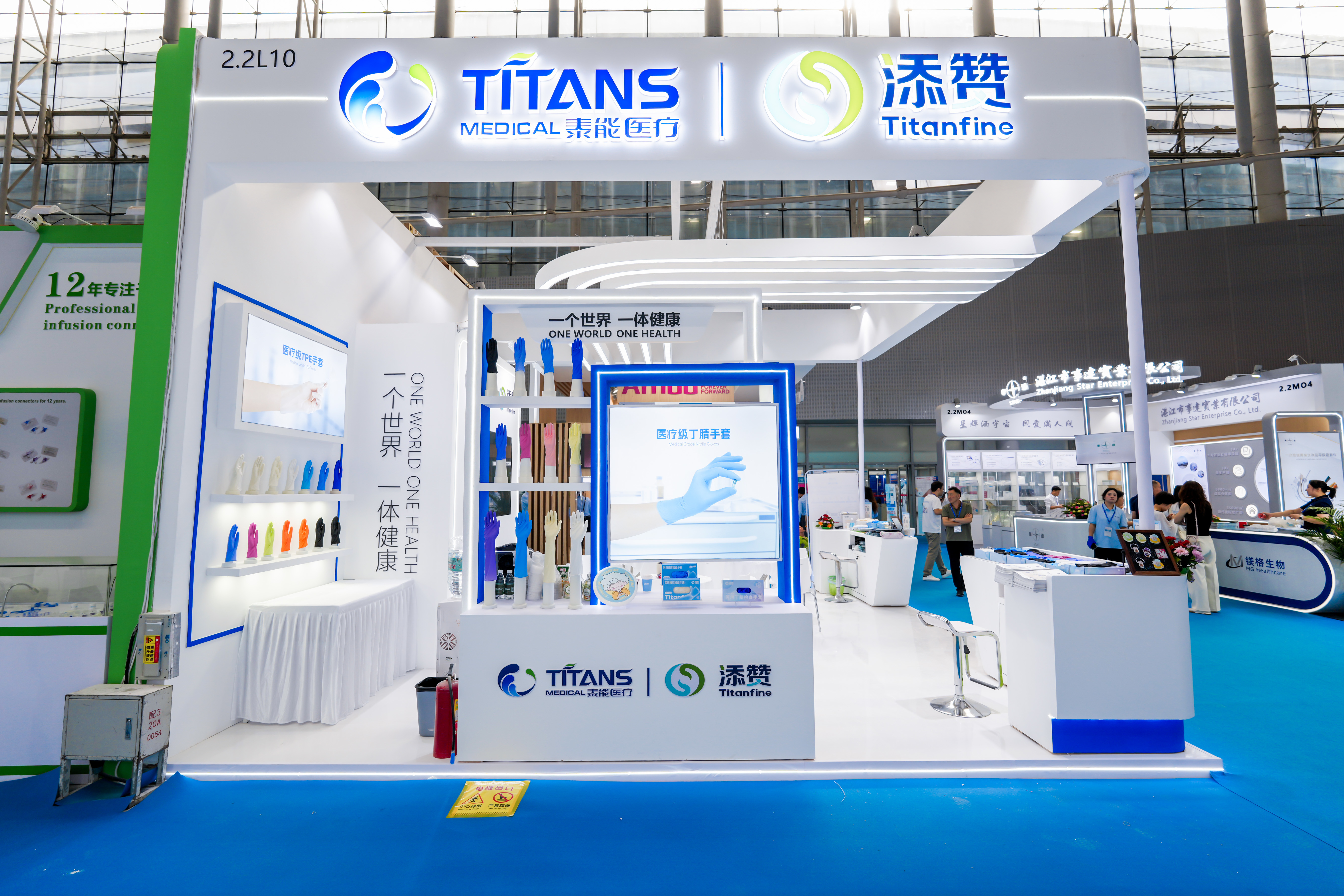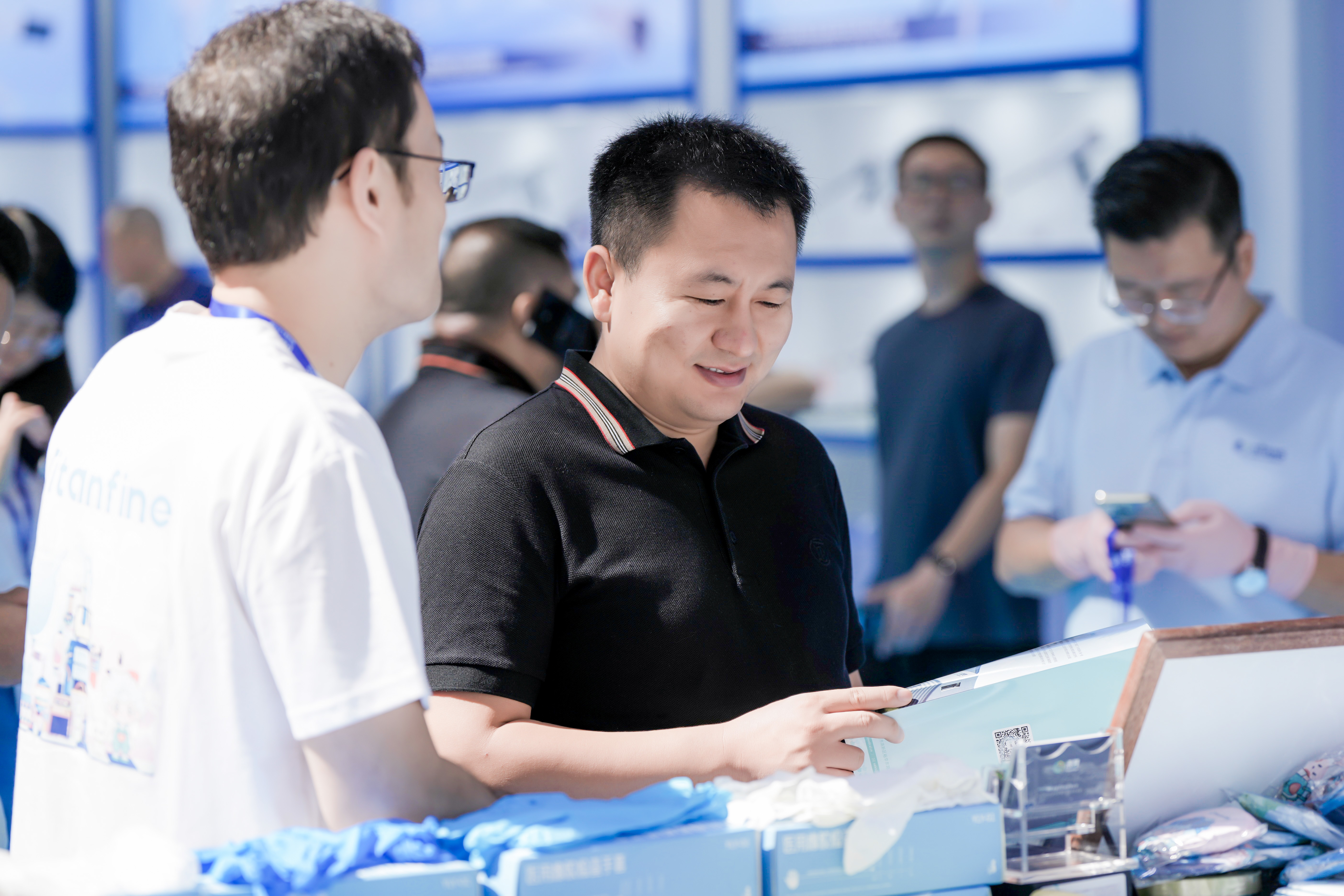 At the exhibition venue, TITANS Medical booth (2.2 L10) under its Titanfine brand stood out prominently. The blue-and-white booth design was sleek and sophisticated, with a clear and eye-catching brand logo, while the interior featured neatly arranged and orderly displays.