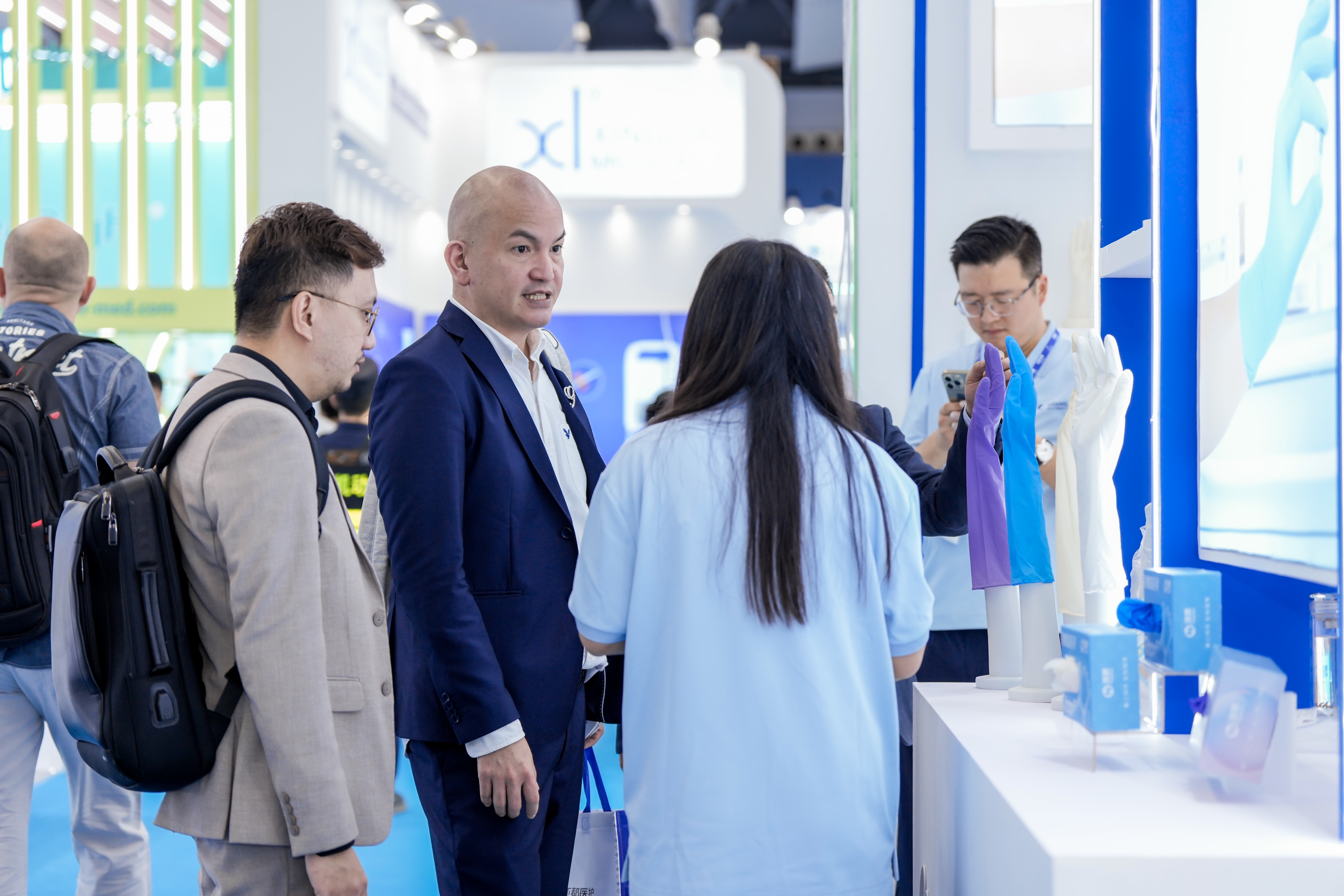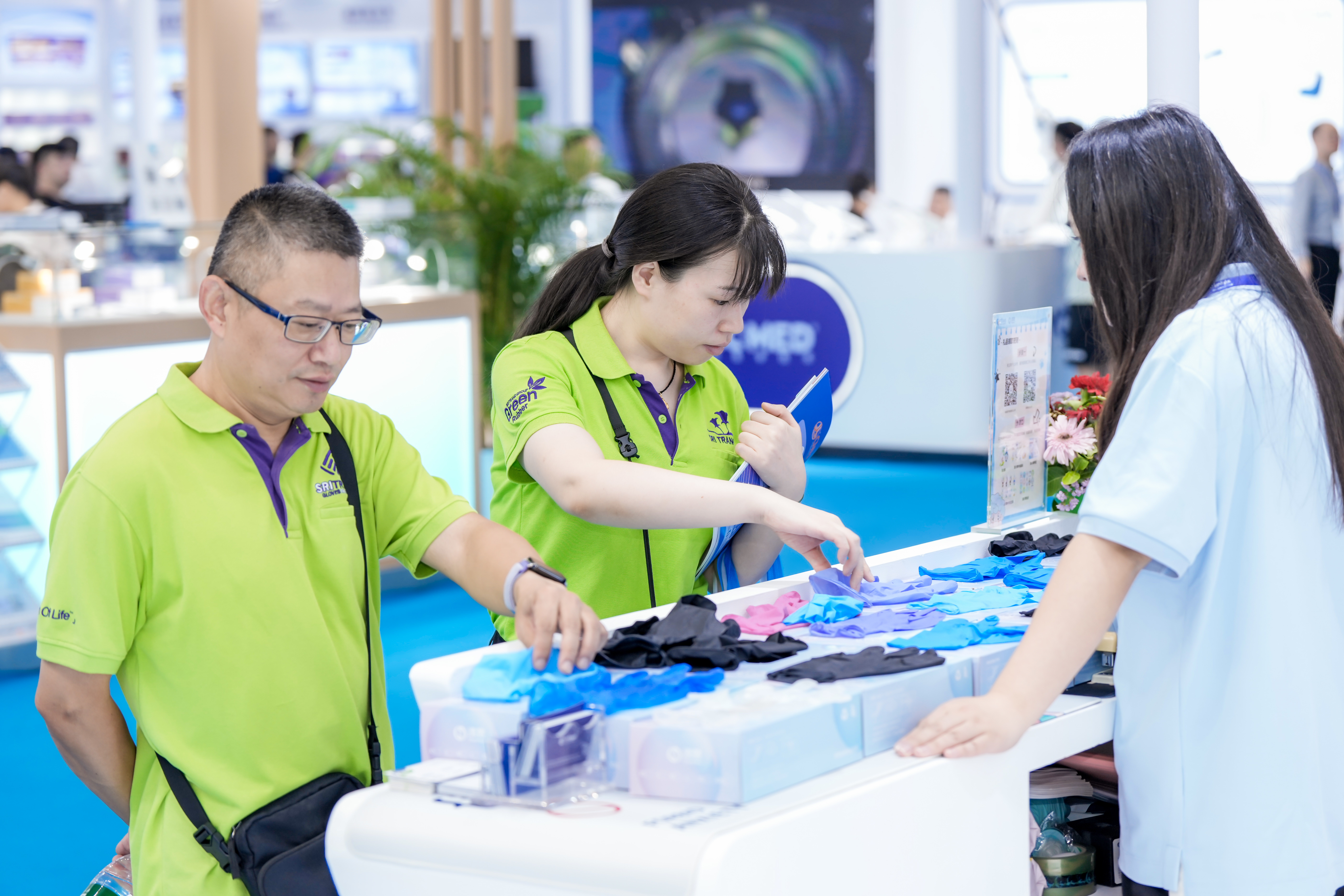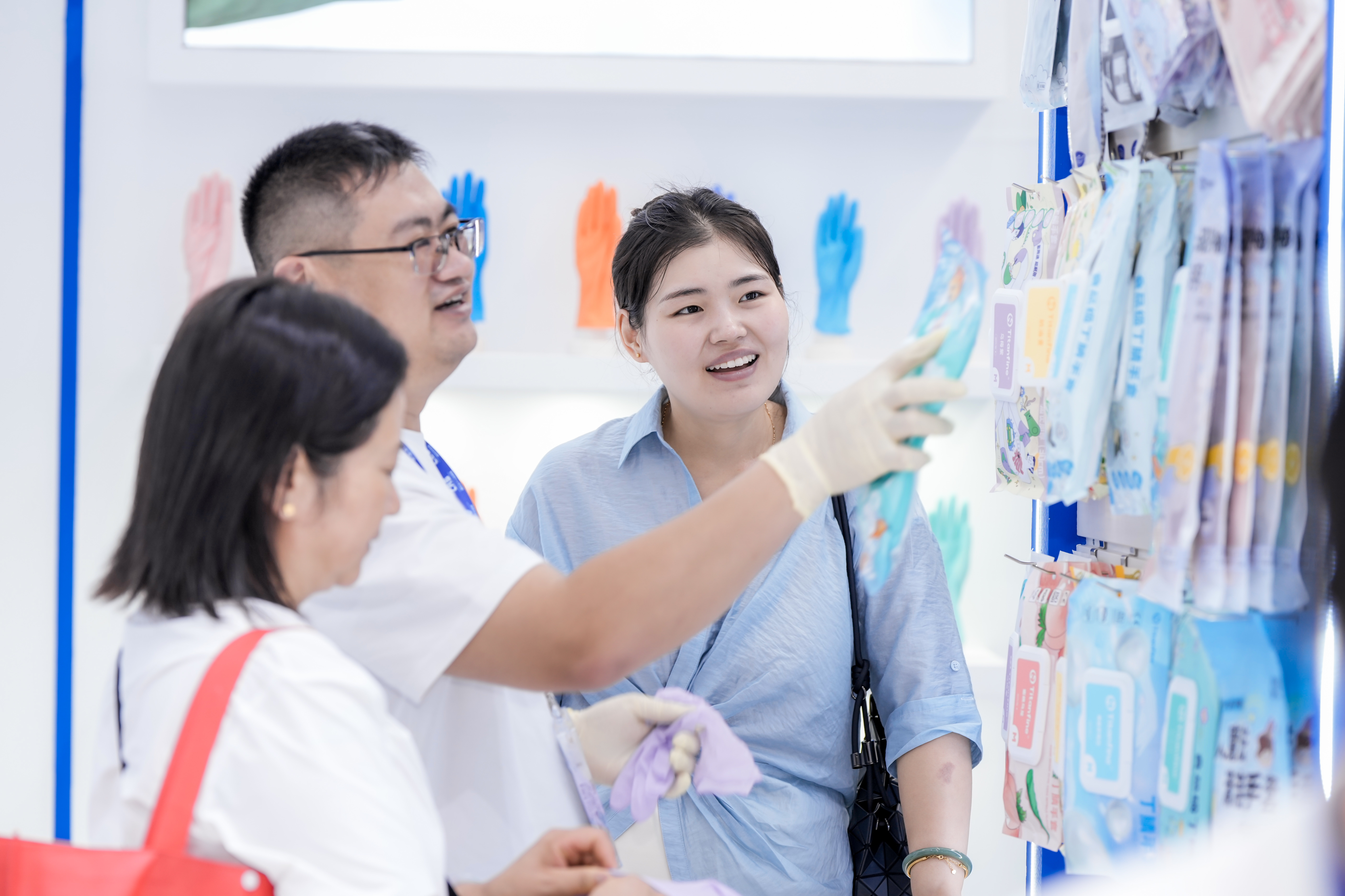 The exhibits displayed at the booth were both abundant and well-organized: ranging from professional-grade nitrile and PVC gloves for medical use to versatile nitrile gloves suited for industrial manufacturing and food processing, as well as food-grade household gloves designed for everyday tasks.